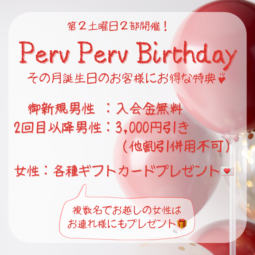 大阪のハプニングバー(ハプバー) Member's salon Perv 男性スタッフのぴのです。 GWが終わり世間は普段の生活が 戻ってきていますね。 だけどパフでは まだまだイベントが目白押し! 直近のイベント2つを ご紹介致します! ●本日18時開催 -Perv Perv Birthday- ![]() パフパフバースデーでは その月誕生日のお客様に お得な特典を用意している イベントです。 ・ご新規男性 :入会金無料 ・会員様男性: 3000円引き(他割引併用不可) ・女性: 各種ギフトカードプレゼント (複数名でお越しの女性は お連れ様にもプレゼント) またお店でケーキを用意しています。 素敵な誕生日を 非日常のドキドキ空間で 楽しみませんか? ●5/14 水曜日18時開催 -さわっていいとも- ![]() さわっていいともとは 店内で擬似痴漢体験ができる イベントです! 「痴漢されてみたい」 「痴漢してみたい」 普段隠してるけど解放することが 許されないこの感情。 この日は曝け出してみませんか? 店内には吊り革を用意。 実際の電車のSEを流し まるで通勤時間の電車内…‼ エチエチな空間で まさに店内は大阪官能線。 もちろん女性の安全 安心は確保いたします! 女性には 赤→痴漢あかん絶対 黄色→交渉ありかも? 青→触っていいとも! のリストバンドをしてもらいます。 まだまだ色んなイベントを企画中です。 是非公式X(@perv_perv_perv)で 情報をチェックしてください! |